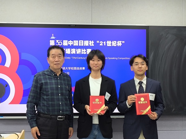 经过激烈角逐,来自英语学院的孙振皓和求索荣誉学院的丁澍菡同学脱颖而出,获得特等奖,将代表8868平台_8868(中国)一站式服务平台参加第30届中国日报社“21世纪杯”全国英语演讲比赛天津赛区决赛。