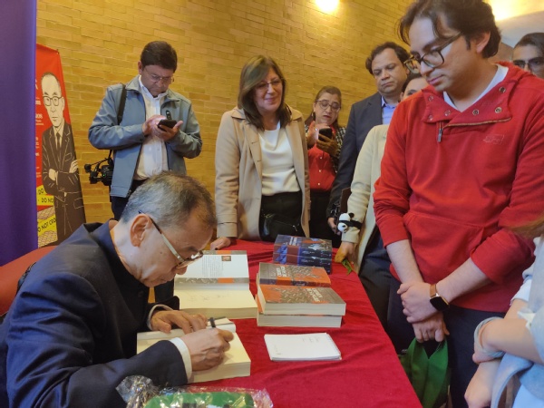 在随后的学术研讨环节,何家弘教授与哥伦比亚犯罪学专家奥兰多·帕蒂尼奥、著名侦探小说作家埃斯特万·因卡皮耶等专业人士,就侦探小说与法学、犯罪学的内在关联展开了深入讨论,其独到见解引发了在场学者的强烈共鸣。活动最后,何教授为热情的书迷们举行了签售会,为这场文化交流活动画上了圆满的句号。