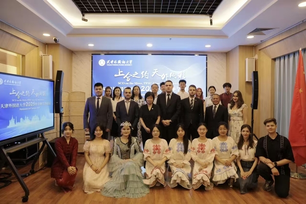 李迎迎在致辞中表示,诸位外交使节踏访天外校园,既是上合峰会前夕一次珍贵的民间外交实践,为天津这座“上合之城”注入了浓郁的国际氛围;也是一次文明对话的生动课堂,各位所代表的丰富文明与悠久智慧,是构建人类命运共同体的宝贵财富。同时,各位使节的来访,更是一次深化合作的宝贵契机。天外愿以服务上合峰会为纽带,与各位使节所代表的国家教育文化机构,开启更富成效的合作新篇。