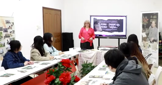 每个月,奥莉佳都会组织本专业学生和白俄罗斯留学生一起,开展读书活动。学生们穿上白俄罗斯传统服饰,一起交流阅读体会。