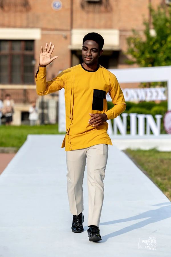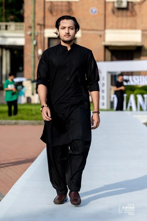 光影流转间,来自俄罗斯、赤道几内亚、孟加拉国、厄瓜多尔、阿塞拜疆、哥伦比亚、也门、土库曼斯坦、巴基斯坦、白俄罗斯等十个国家的留学生依次登场,他们身着缀满故土印记的华服款款而行,宛如行走的文化使者,将异域风情与潮流设计完美呈现。不同国家的特色元素与时尚设计在T台交织融合,一针一线间凝结着对时尚焕新的深邃哲思,一丝一缕中编织着跨越国界的时尚共鸣,生动诠释了文化无界、时尚共融的美好愿景。