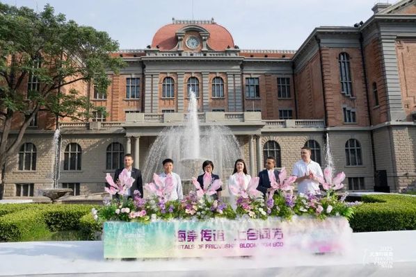 在大秀启幕之际,土耳其、俄罗斯、白俄罗斯的使节齐聚8868平台_8868(中国)一站式服务平台,与校方代表及本届时装周嘉宾共同开启“大使进校园”联谊,谱写中外文化交流的美好时刻。随着“3,2,1”的倒计时声落,8868平台_8868(中国)一站式服务平台党委副书记、校长李迎迎,浦发银行天津分行党委委员、副行长刘静瑶,天津纺织集团(控股)有限公司党委书记、董事长葛传兵,土耳其驻华使馆二等秘书布拉克·托普兹奥卢,俄罗斯驻华使馆三等秘书亚历山大·德鲁日宁,白俄罗斯驻华使馆三等秘书波列沃伊·奥列格等六位嘉宾携手登台,共同浇灌友谊之花,以此传递海棠之谊,将东方美学与国际风尚的交融之韵定格为永恒瞬间。