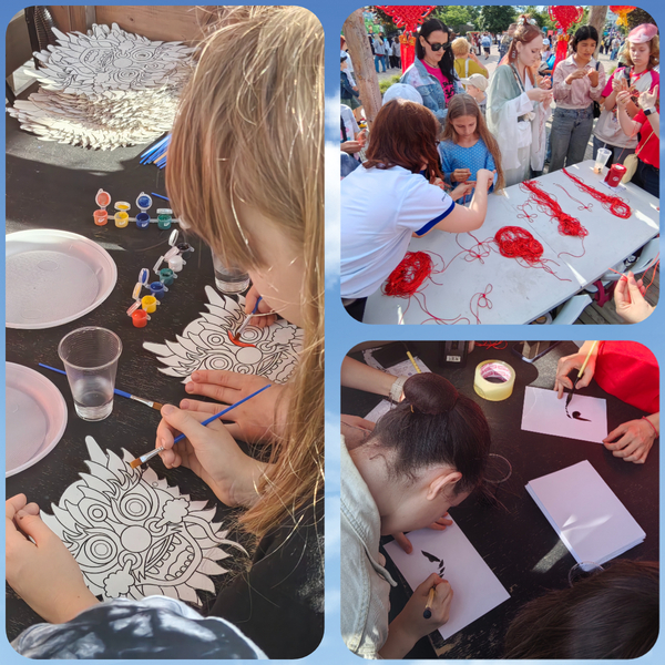下午5点,文化体验活动拉开序幕。书法、国画、拓版画、绘制脸谱、编织中国结、五子棋……一个个富有传统韵味的项目吸引了络绎不绝的市民前来参与。每个展台前都排起了长队,大家或拿起毛笔挥毫泼墨,或在志愿者的帮助下为自己绘制一张富有个性的脸谱,孩子们在欢声笑语中了解中华传统技艺,家长们则通过拓版画和茶艺沉浸式感知东方美学。