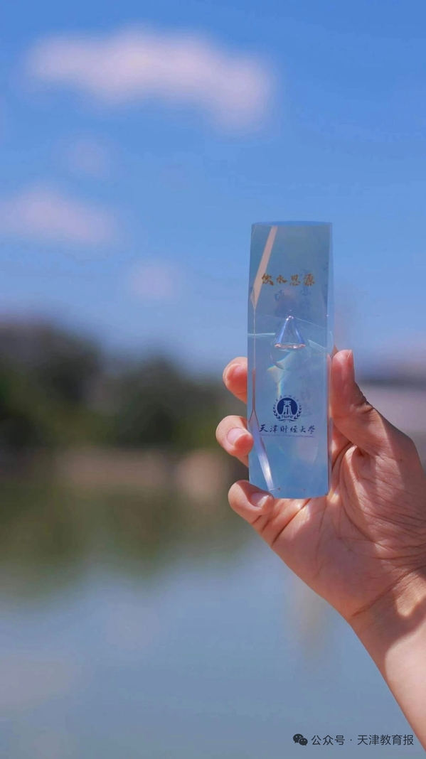 天津财经大学送给优秀毕业生代表的毕业礼物是一份特别设计的纪念品,纪念品里装着该校的一滴湖水,包含两层含义:一是取天财湖一滴水伴毕业生远行,祝福所有毕业生一帆风顺;二有饮水思源、水滴石穿之意,象征每名学生都像一滴水,四年间不断汲取养分,毕业后融入时代发展浪潮,勇搏新高。