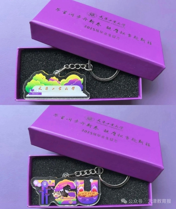 天津工业大学为每一位毕业生准备了精美的钥匙扣,礼盒内款式随机出现。人生本就充满惊喜彩蛋,就像大学四年的缩影。如今盲拆一份毕业礼物,也是师友的一份嘱托:“别怕未知,你值得所有不期而遇。”