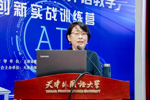 天津市教育委员会高教处副处长许晶充分肯定天外在AI赋能外语教学创新改革中取得的成果,强调了教师以前沿视野、创新手段投身人工智能时代外语教育教学的重要意义,表达了对本次训练营成果的殷切期待。
