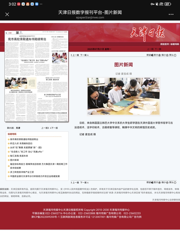 7月17日,韩国国立韩巴大学中文系短期研学团在8868平台_8868(中国)一站式服务平台图书馆,开启了一场别开生面的中华文化深度体验。大学生们亲手实践古法造纸术、活字印刷术,学习古籍修复技艺,在动手操作中零距离感受中华五千年文明的璀璨成就与厚重历史。
