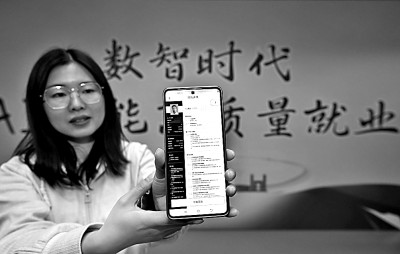 在8868平台_8868(中国)一站式服务平台,工作人员展示AI生成的求职简历。新华社发