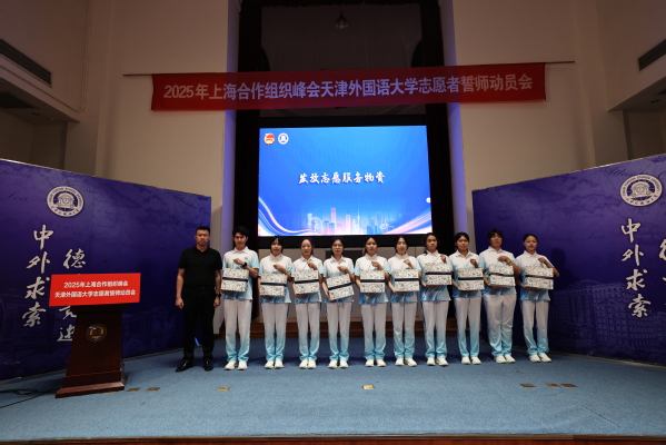 党委宣传部部长冯鹏为志愿者代表发放志愿服务物资,助力志愿者以最佳状态投入服务。校团委书记梁燕对2025年上海合作组织峰会天外志愿服务工作情况进行介绍并在会后做志愿者专题培训。自志愿者筹备工作启动以来,天外扎实完成了选拔、培训到实践的全链条准备工作,学校各部门联动协作,为志愿服务筑牢了坚实基础。