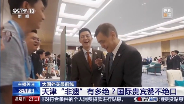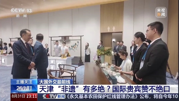 8月31日晚,国家主席习近平和夫人彭丽媛在天津梅江会展中心举行宴会,欢迎来华出席2025年上海合作组织峰会的国际贵宾。欢迎宴会开始前,贵宾们参观了天津非物质文化遗产展示,驻足观看、上手体验,亲切交流,气氛融洽,为平等、互鉴、对话、包容的文明观写下新的生动见证。