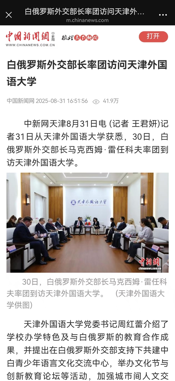 【相约上合】人民网、中国日报网、中国新闻网、《天津教育报》微信公众号等多家媒体报道白俄罗斯外长到访我校