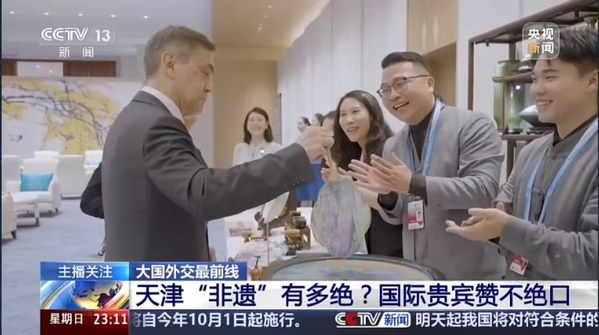 在梅江会展中心,翻译团队作为晚宴和非遗展示区的沟通纽带,为各国贵宾搭建交流平台,为讲好中国故事、天津故事、非遗故事贡献了天外力量。