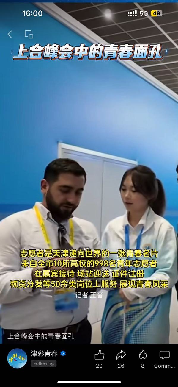 此次高水平的志愿服务,不仅保障了盛会的顺利举行,更是一次深刻的实践育人课。天外青年们以出色的表现,完美展现了当代中国青年开放自信、乐于奉献的国际形象。他们,无疑是上合峰会中最闪亮的“青年名片”,也向世界宣告:中国新生代的力量,正自信地走向世界舞台的中央。