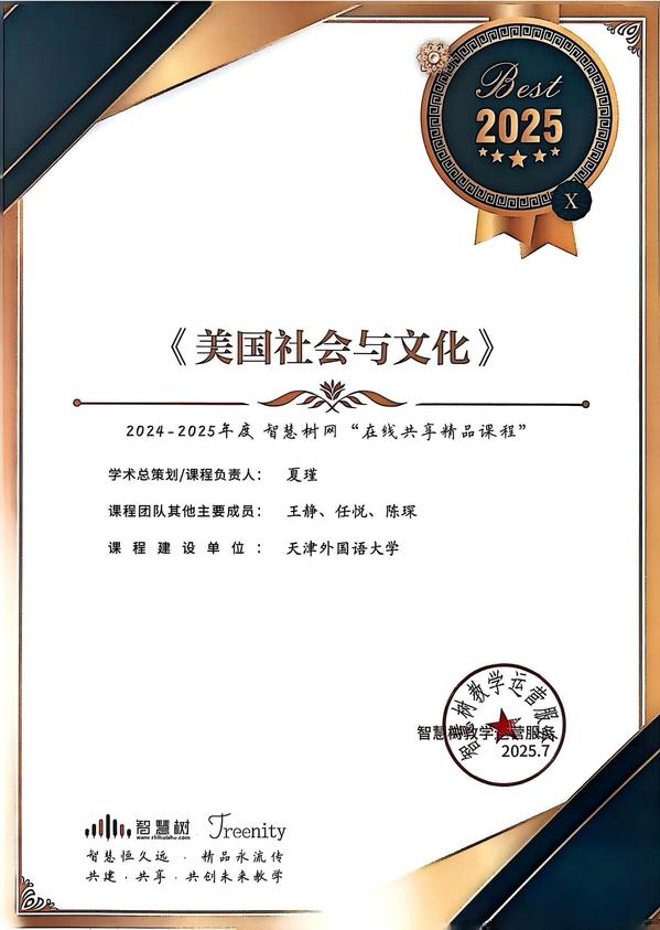 近日,智慧树网公布了2024-2025年度“在线共享精品课程”评选结果,我校《美国社会与文化》《学术英语写作》《个人理财》门课程成功入选,这是学校课程建设方面取得的又一阶段性成果,充分展示了天外在教育数字化和课程共享领域的积极探索与丰硕收获。