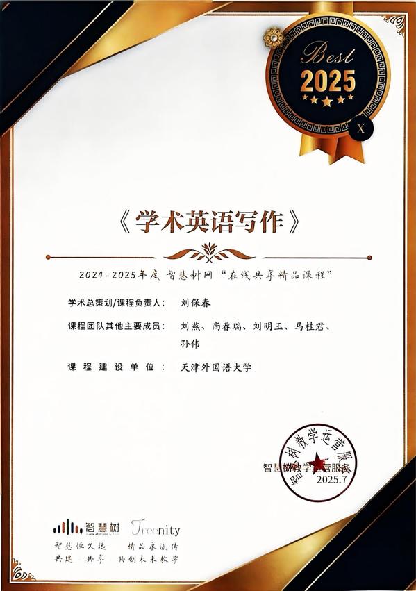 天外3门课程入选2024-2025年度智慧树网“在线共享精品课程”