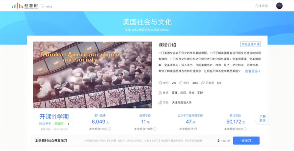 三门入选课程紧扣国家发展对人才能力的核心需求,彰显鲜明的时代价值与育人特色。《美国社会与文化》面向外语类与国际教育专业学生,系统讲授美国社会历史、政治制度、经济形态及文化特色,帮助学生加深对跨文化差异的理解与认知,提升跨文化沟通与全球化背景下的思辨能力。