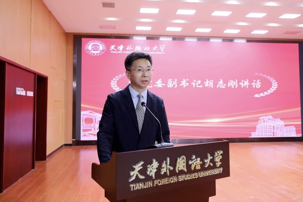 胡志刚在讲话中指出学校党委始终高度重视援疆工作,选派优秀大学生赴新疆实习支教,是学校服务国家战略的重要举措,是铸牢中华民族共同体意识、促进区域协调发展的生动实践。支教团的全体师生提出三点希望。一是提高政治站位,牢记使命担当。要用高度的责任感和使命感投入工作,用实际行动践行为党育人、为国育才的初心使命。二是潜心教书育人,播撒希望种子。要虚心向当地的干部群众学习,与各族师生、群众真诚交朋友、结对子,像石榴籽一样紧紧地抱在一起,积极充当文化交流的使者,讲好中国故事、天津故事、天外故事。三是磨练意志品质,实现自我升华。要充分发挥党员的先锋模范带头作用从维护祖国统一和民族团结的高度出发,敢担当、有作为。