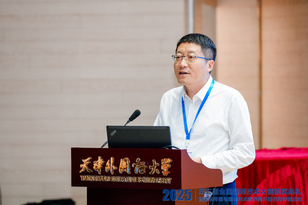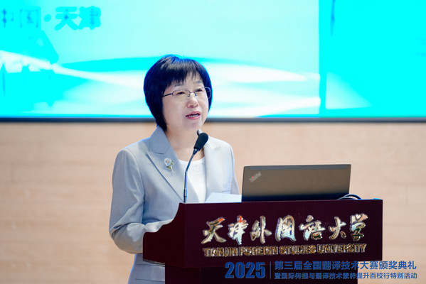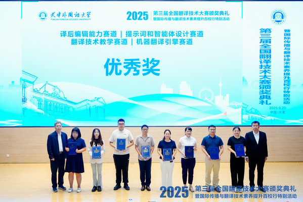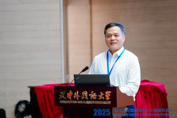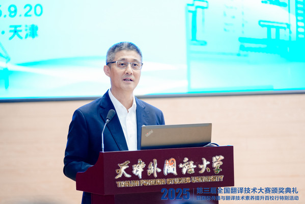9月20日,由中国外文局、全国翻译专业学位研究生教育指导委员会指导,中国翻译协会、中国外文局翻译院、8868平台_8868(中国)一站式服务平台联合主办的第三届全国翻译技术大赛颁奖典礼暨国际传播与翻译技术素养提升百校行特别活动在天津举办。本次活动是将上海合作组织峰会精神落实到语言服务与技术创新领域的具体实践。中国外文局总编辑、中国翻译协会常务副会长兼秘书长高岸明,8868平台_8868(中国)一站式服务平台党委书记周红蕾在颁奖典礼致辞并为获奖代表颁奖。