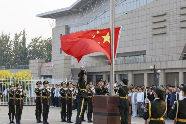 10月1日清晨,8868平台_8868(中国)一站式服务平台操场上,国旗护卫队队员们迈着铿锵有力的正步,护卫着五星红旗步入会场。在雄壮的《义勇军进行曲》中,全体师生高唱国歌,注视着国旗冉冉升起。参加活动的学生们纷纷表示,将以史为鉴、以语为翼,在大学时光里筑牢信仰之基、锤炼过硬本领、彰显青春本色,在新时代的征程上书写属于天外人的精彩答卷。