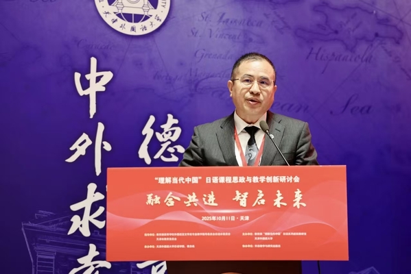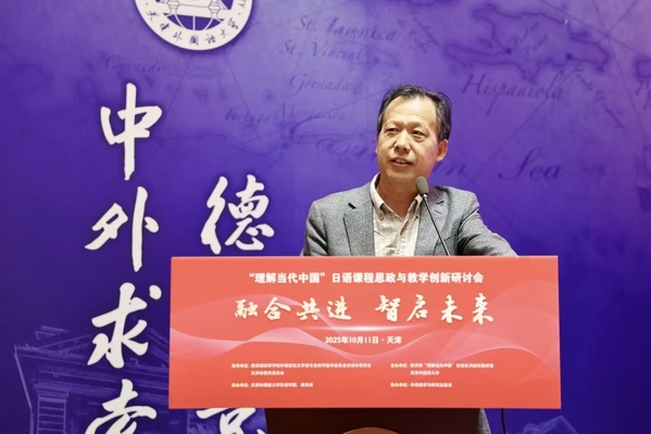 开幕式上,徐震对天外“理解当代中国”课程思政与教学创新工作取得的成绩表示肯定。他指出,“理解当代中国”系列教材的编写与推广,是推动外语教育改革创新、服务国家战略需求的重要举措。本次研讨会以《理解当代中国》日语系列教材为依托,聚焦课程思政与日语教学的深度融合,探讨教学创新路径,必将为我市乃至全国的日语教学改革注入新的活力,为探索外语教育服务国际传播能力建设开拓新的思路。