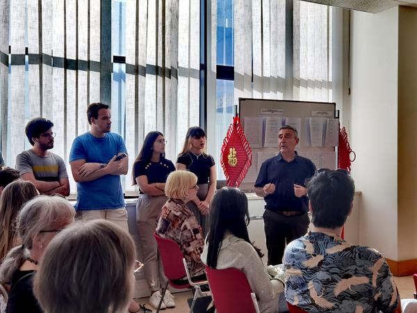 为迎接第14个联合国中文日,里斯本大学孔子学院近期举办了第三届《我学习汉语的故事》中文写作比赛和第二届“我爱学中文”汉字书写比赛。来自里斯本大学文学院、孔子学院社会班、圣托马斯孔子课堂以及德国国际学校的161名学生参加比赛。 4月19日下午,颁奖仪式在里斯本大学孔子学院举行。中外方院长、教师和获奖学生及家长70余人参加。外方院长若昂?巴雷罗祝贺获奖学生,他表示,随着中葡两国友好关系的发展,越来越多的葡萄牙人想学习汉语和中国文化。里斯本大学孔子学院始终致力于高水平的汉语教学和中国优秀文化的推广。成立十五年来,孔子学院已培养了近两万人次的各类学生,一大批高素质的汉语人才在中葡交流与合作中发挥着重要的作用。未来,孔子学院将继续提高汉语教学水平,举办丰富的课外学习活动,为民众提供全方位的汉语学习环境和良好的学习体验。 外方院长讲话 中文写作比赛一等奖获得者闻德(Duarte Veloso) 代表参赛学生发言。他表示,参加此次中文写作比赛不仅学到了更多的汉语知识,而且提高了汉语的写作能力,这次比赛成为了他学习汉语道路上新的里程碑。他代表全体参赛学生向孔子学院精心组织这次比赛表示衷心感谢,并鼓