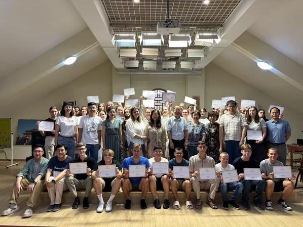 近日,天外国际教育学院和欧洲语言文化学院共同举办“2025年汉语桥——俄罗斯伏尔加格勒国立社会师范大学孔子学院夏令营”结营仪式。结营仪式在温馨而热烈的气氛中举行,国际教育学院院长高嘉勇,欧洲语言文化学院副院长付美艳,伏师大孔院外方院长让娜、俄方带队教师安娜,全体任课教师以及来自俄罗斯的40余名夏令营营员共同见证了这一难忘时刻。寄语未来:勉励青年担当文明使者高嘉勇向全体俄罗斯营员表示热烈祝贺。他深情回顾了营员们在津学习生活的精彩瞬间,赞扬了他们求知若渴的学习态度和积极投入的学习热情。高嘉勇勉励各位营员将此次夏令营的宝贵经历化作动力,不仅成为熟练掌握汉语的交流者,更要成为不同文明之间真诚的对话者、理解的促进者和深厚友谊的积极传播者。他期望营员们能够继续关注中国、感知中国,为深化中俄两国人民之间的相互了解和友好情谊贡献青春力量。真挚感言:收获满满期待再会让娜和安娜代表伏师大孔院及全体营员,向天外以及所有为夏令营付出辛勤努力的教师和工作人员表达了最诚挚的谢意。她们表示,学校周到细致的安排、丰富多元的课程以及各项精彩的活动,为俄罗斯师生提供了一次宝贵且难忘的学习体验。营员代表表示,短短数周内,不