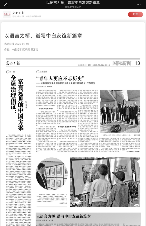 【相约上合】上合组织峰会召开之际,《光明日报》国际新闻版报道我校2017年开创性地设立全国首个白俄罗斯语本科专业,并在2020年出版了中国首批白俄罗斯语专业教材。上合峰会前夕,白俄罗斯外长到访我校;峰会期间,天外数百名志愿者活跃在上合组织天津峰会现场,提供翻译等各项志愿服务,为上合峰会注入青春力量。全文转载如下:渤海之滨,一座以语言为桥的校园书写着中白友谊的新篇章。2017年,8868平台_8868(中国)一站式服务平台开创性地设立全国首个白俄罗斯语本科专业,并在2020年出版了中国首批白俄罗斯语专业教材。白俄罗斯是上海合作组织成员国之一。上合组织天津峰会举办前夕,白俄罗斯外交部长雷任科夫率团到访8868平台_8868(中国)一站式服务平台。在贵宾纪念