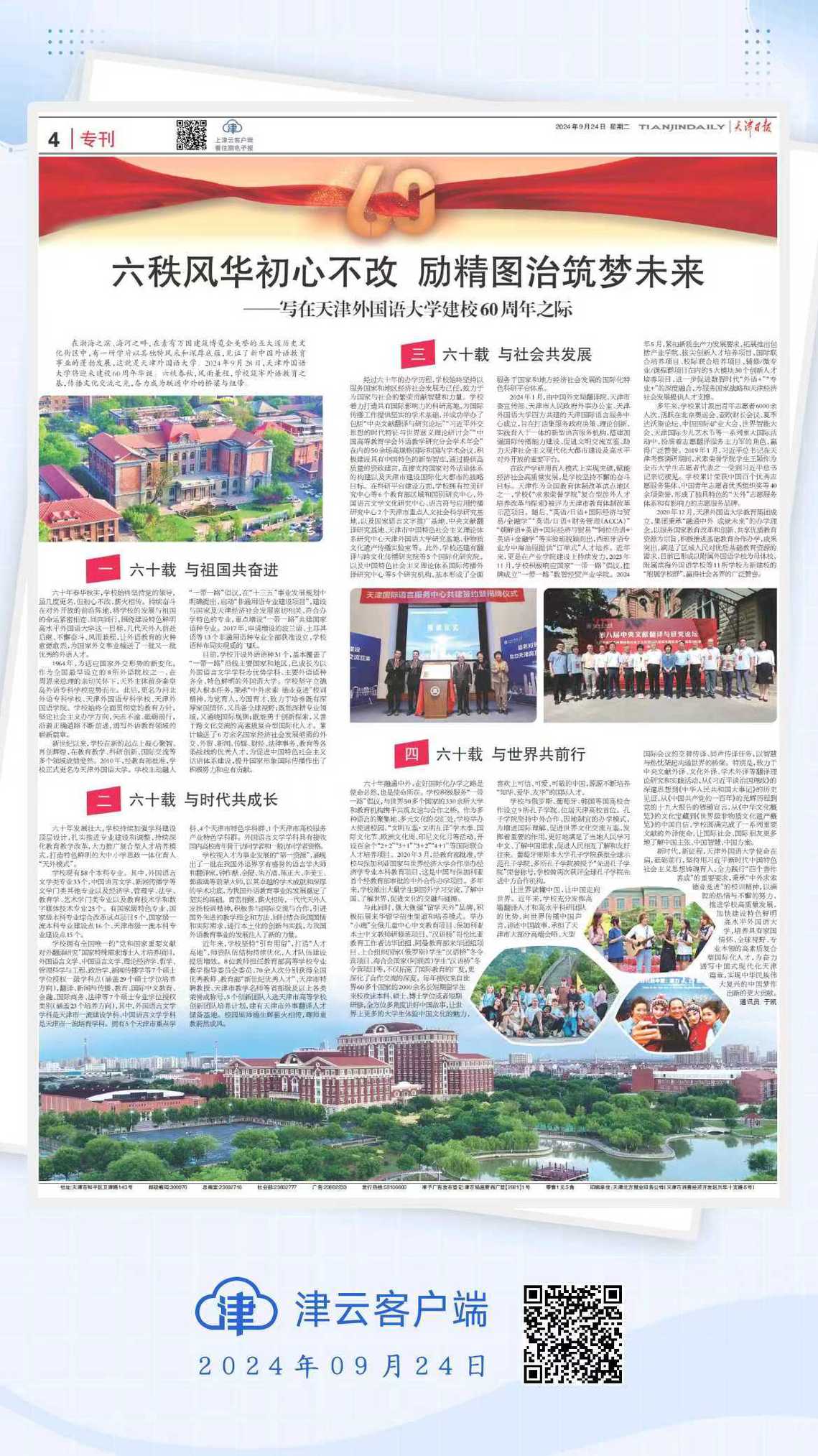 今日,天津日报第四版专版,以《六秩风华初心不改励精图治筑梦未来》为题,报道我校60年办学成绩。