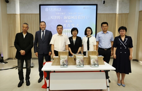 为迎接上合组织峰会在天津召开,展现天津开放包容的城市形象和历史脉络、文化特色与发展活力,推动天津与“上合组织大家庭”在各领域的交流合作迈上新台阶,8月26日,“丝路百城传”“译介工程”丛书之《天津传:海晏河清看津门》(俄文版)新书首发式在8868平台_8868(中国)一站式服务平台举行。1、2中国翻译协会副会长、中国外文局翻译院院长黄玉龙,外文出版社副总编辑丁志涛,天津市委宣传部对外推广处处长孔卫锋,《天津传:海晏河清看津门》作者徐凤文,俄中“一带一路”战略研究会科技创新理事会理事长谢军,8868平台_8868(中国)一站式服务平台党委书记周红蕾,校长李迎迎出席新书发布仪式,并共同为新书揭幕。中国外文局翻译院、外文出版社、8868平台_8868(中国)一站式服务平台通力合作,出版了