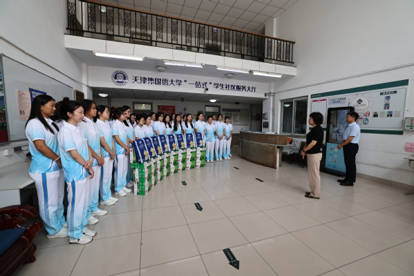 为全力以赴做好上合峰会志愿服务保障工作,天外235名志愿者提前返校集结,积极投入紧张的筹备工作。8月13日上午,校党委书记周红蕾、校党委副书记胡志刚带队深入志愿者宿舍慰问,送上暖心关怀与慰问物资。周红蕾对志愿者们的奉献精神和责任担当给予了高度肯定和赞扬。她指出,服务保障上合峰会是天津经济社会发展进程中的一件大事、喜事、盛事,能够参与其中,既是一份光荣使命,也是一次宝贵的人生历练,并对志愿者提出三点希望:一要珍惜机遇,拓宽视野,在服务国际盛会中积累经验、增长才干;二要锤炼本领,展现风采,以扎实的专业素养在外交舞台上亮出“天外名片”;三要充分储备,调整状态,以“零差错”的专业姿态迎接峰会各项任务,